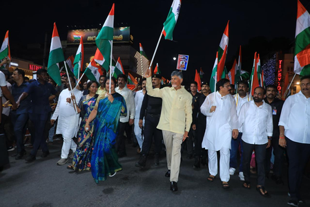 Vijayawada, May 14 (IANS) Andhra Pradesh Chief Minister N. Chandrababu Naidu and Deputy Chief Minister Pawan Kalyan on Friday participated in a massive Tiranga Rally here to celebrate the Indian Armed Forces’ triumphant Operation Sindoor.