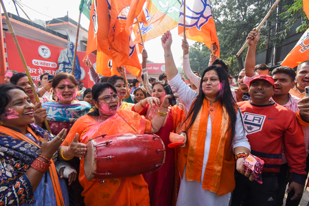 Celebrations started in the BJP camp in Jammu immediately after the victory of the party candidate was announced in Nagrota.