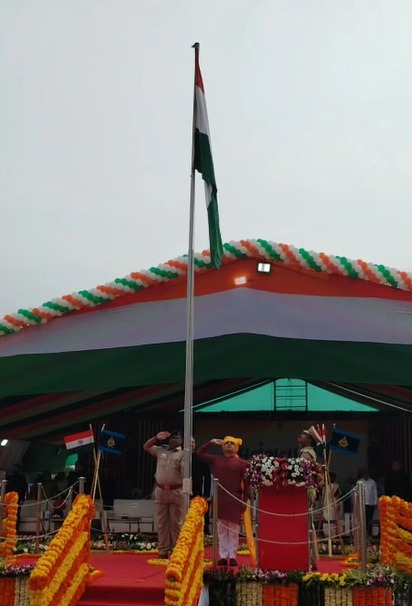 Gandhinagar, Aug 15 (IANS) Gujarat Home Minister Harsh Sanghavi hoisted the national flag on Friday during the 79th Independence Day celebrations at Ramkatha Maidan, Sector 11, Gandhinagar.