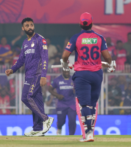 Guwahati, March 26 (IANS) After returning with figures of 1/43 in the IPL 2025 opening game against the Royal Challengers Bengaluru (RCB), Varun Chakaravarthy bounced back in sizzling style to pick 2-17 and play a vital role in Kolkata Knight Riders (KKR) restricting Rajasthan Royals to 151/9.