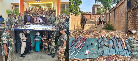 The arms and ammunition recovered from the militants include two INSAS rifles, one INSAS Light Machine Gun, one carbine, one MK-11 rifle, around 170 various types of ammunition, besides a radio handset, one two-wheeler, one car, various identity cards, and some incriminating documents.