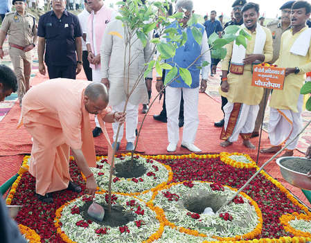Ayodhya, July 9 (IANS) Uttar Pradesh Chief Minister Yogi Adityanath on Wednesday planted saplings of banyan, neem, and peepal at Triveni Vatika on the banks of the Saryu River in Ayodhya, dedicating them to Lord Shri Ram, Mother Earth, and ‘Janmadayini Maa (all mothers)’ under the ‘Ek Ped Maa Ke Naam’ campaign.