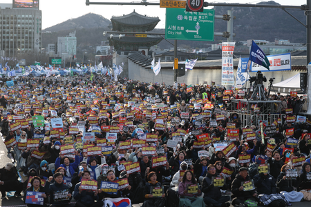 “What the Constitutional Court must uphold is the safeguarding of democracy on this land and a ruling for an ouster,” Kim Jae-ha, a leader of the civic group behind the rally, said.